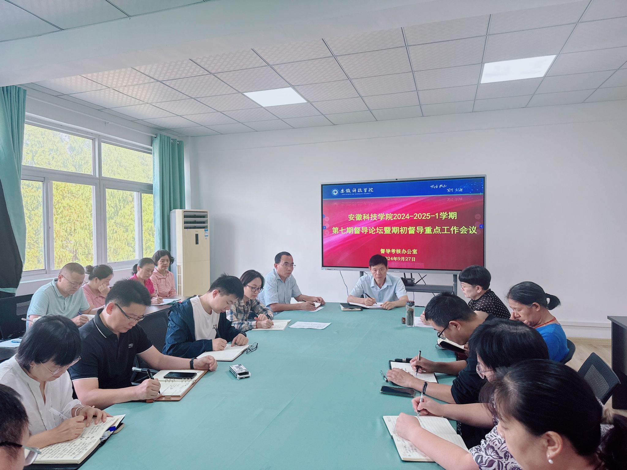 20256月27日上午,学校召开第九期督导论坛暨期末教学督导重点工作会议。凤阳校区、龙湖校区和滁州校区的参会形式为线上、线下同步进行。全体校院两级督导员、督导考核办公室工作人员参加了会议,会议由督导考核办公室马万征主持。马万征首先总结了本学期督导重点工作,充分肯定了全体督导对学校教育教学质量监控工作的辛勤付出,然后对校院两级教育教学督导联动工作进行了部署,提出了“严督善导-分类施策-全周期闭环”三位一体的校...