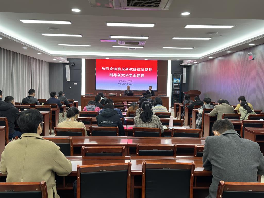 李震代表学校对姚卫新教授莅临350vip浦京开展新文科教育专业认证工作指导表示热烈欢迎。他指出,当前350vip浦京上下正紧紧抓住更名大学纳入安徽省“十四五”高校设置规划的难得机遇,在朝向更名大学的路上努力奋斗。要实现一流应用型大学的建设目标,须着力提升专业建设和发展水平。他认为,专业认证既是高校服务地方经济社会发展和提高人才培养质量的内在要求,也是应用型大学发展的战略选择;既是学校推进专业建设与改革,提高专业综合实力,提升人才培养水平的重要抓手,也是高校践行“以本为本”理念、实现内涵式发展的必由之路。他要求,学校上下要以本次新文科教育专业认证专题讲座为契机,进一步深化认识,明确责任,完善工作机制,强化时间观念,做好新文科教育专业认证工作时间表,对标专业认证标准,抓好、抓实新文科教育专业认证工作。他希望,借助专业认证工作的不断推进,能不断强化专业内涵建设,使学校的人才培养模式更加科学,教师教学能力不断提升,学生学习质量持续提高,教学质量保障体系更加完善,促进学校教育高质量发展。